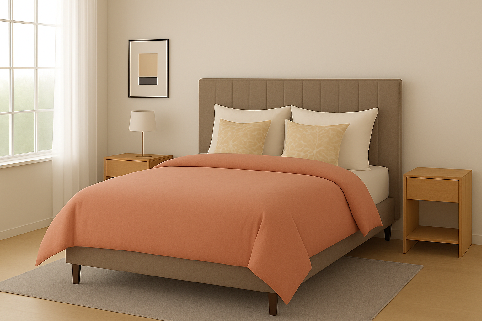 Dit moderne bed straalt rust en elegantie uit dankzij het strakke ontwerp en de luxe afwerking. Het royaal beklede hoofdbord met geometrische lijnen geeft een eigentijdse uitstraling en biedt extra comfort tijdens het lezen of ontspannen.