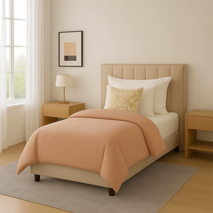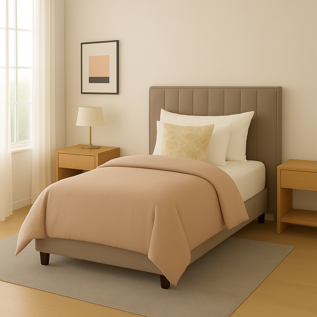 Dit moderne bed straalt rust en elegantie uit dankzij het strakke ontwerp en de luxe afwerking. Het royaal beklede hoofdbord met geometrische lijnen geeft een eigentijdse uitstraling en biedt extra comfort tijdens het lezen of ontspannen.